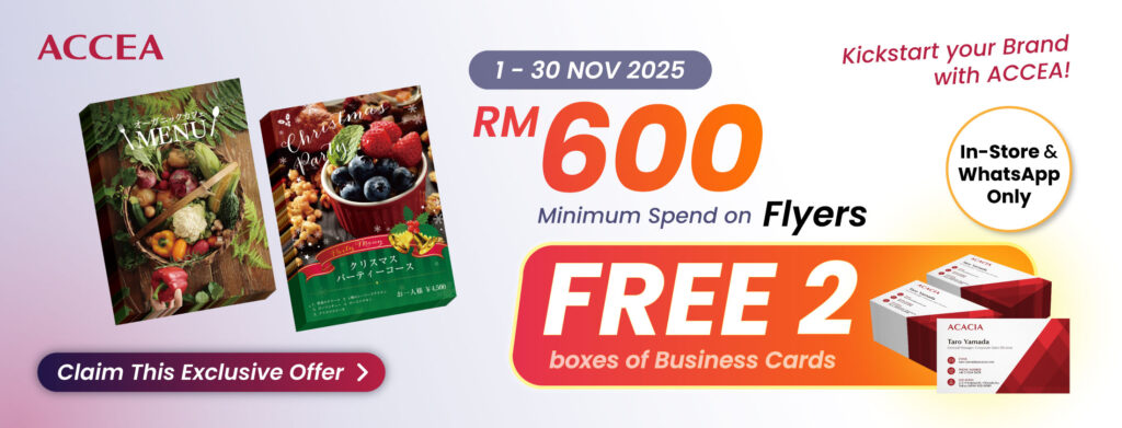 Spend a minimum of RM600 on Flyers (any size, full color, double-sided) and receive